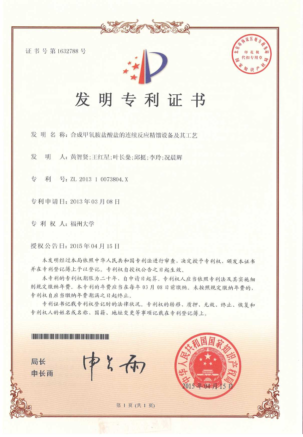 【ZL201310073804.X】 合成甲氧胺盐酸盐的连续反应精馏设备及其工艺(发明专利)