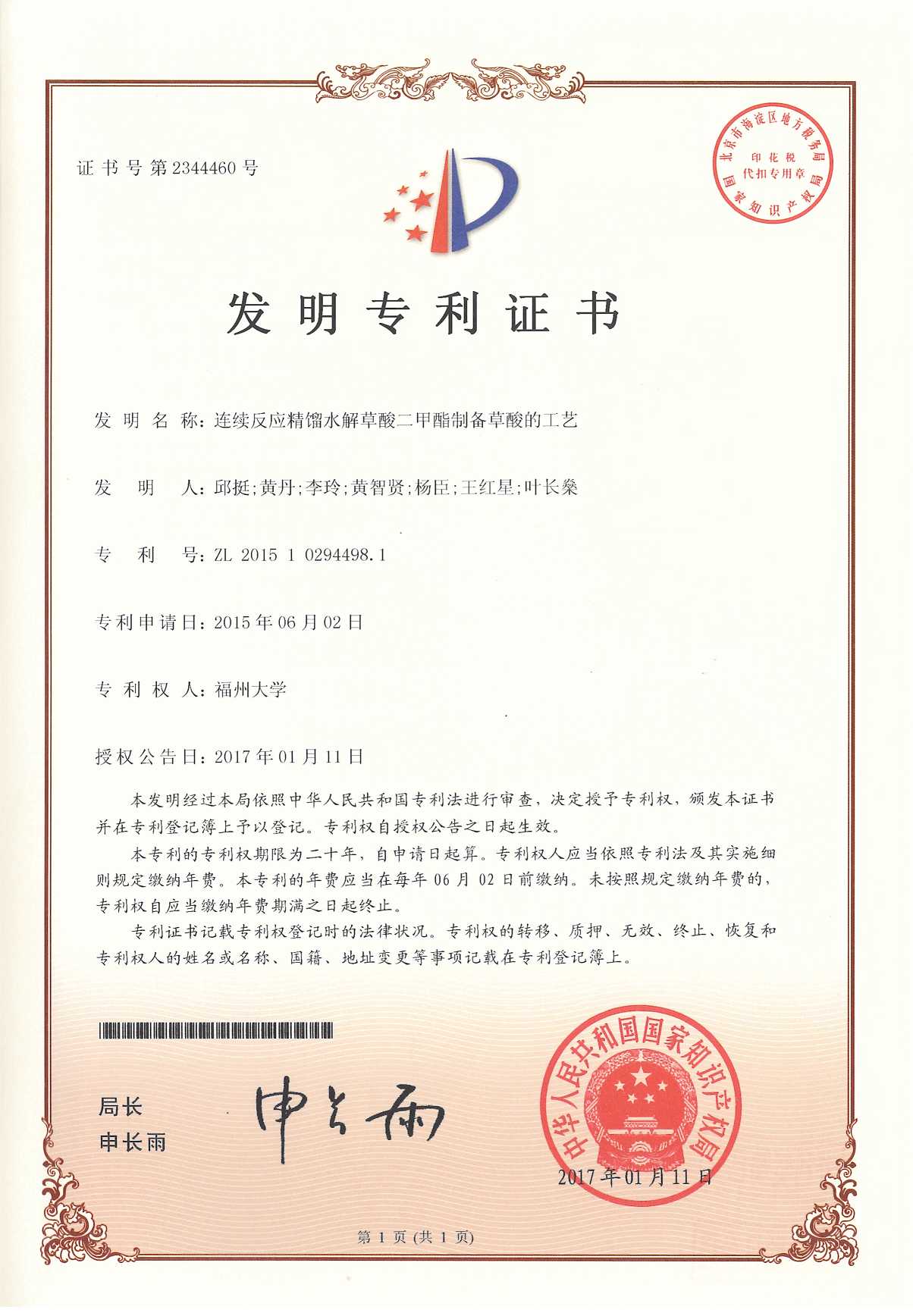 【ZL201510294498.1】 连续反应精馏水解草酸二甲酯制备草酸的工艺(发明专利)