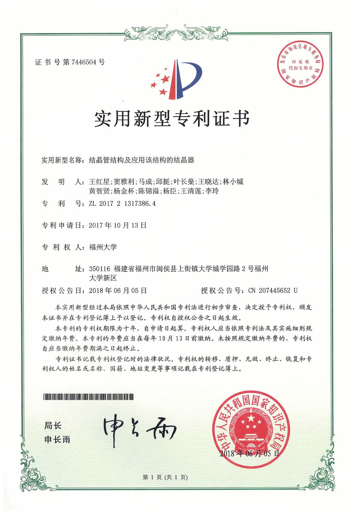 【ZL201721317386.4】 结晶管结构及应用该结构的结晶器(实用新型)