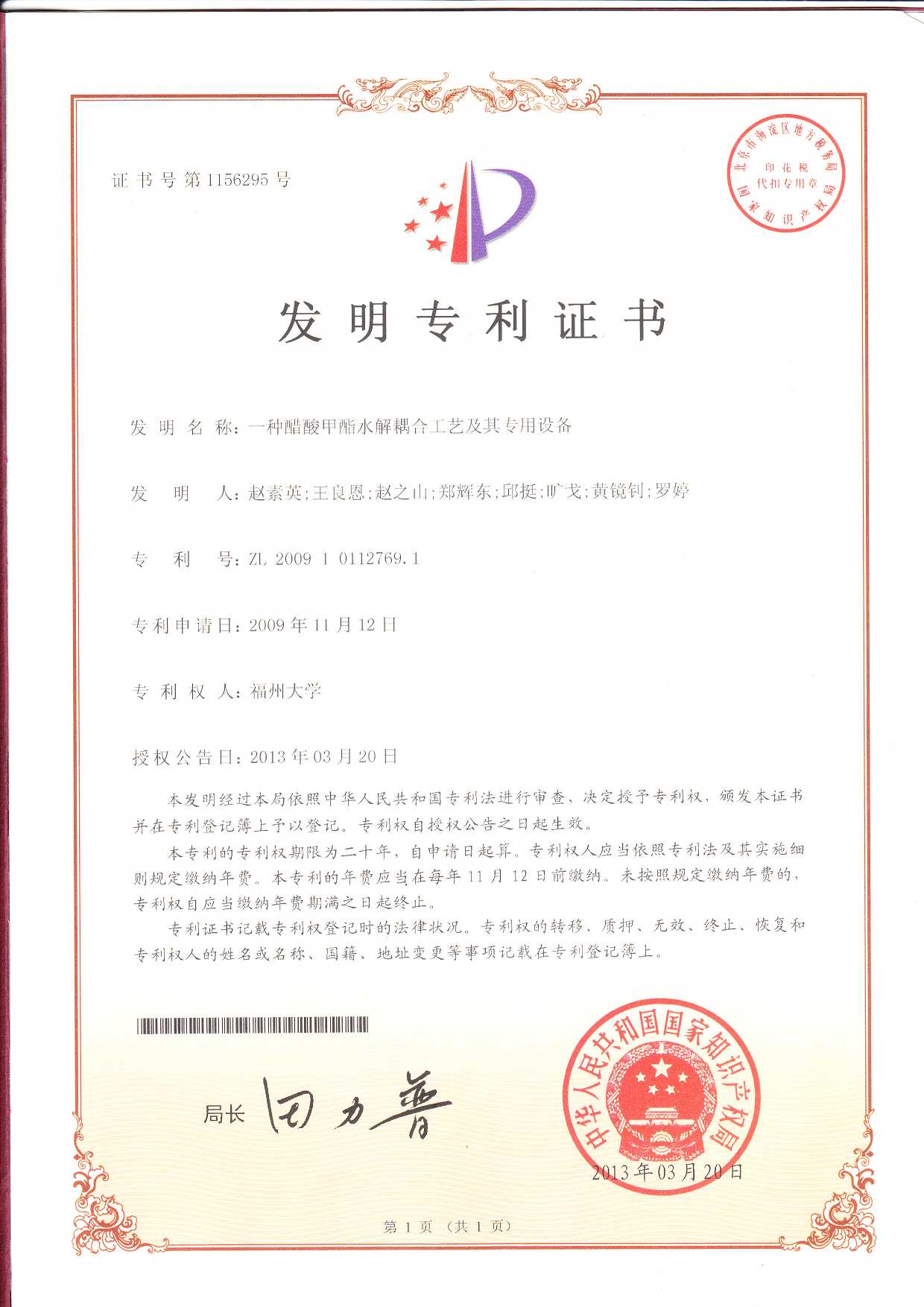 【ZL200910112769.1】 一种醋酸甲酯水解耦合工艺及其专用设备(发明专利)