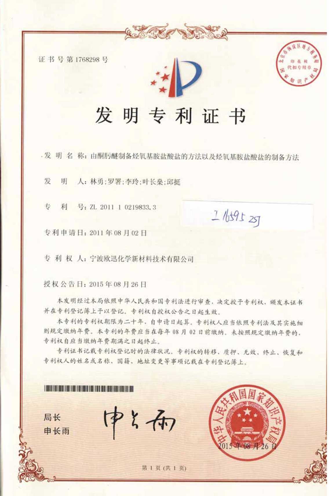 由酮肟醚制备烃氧基胺盐酸盐的方法以及烃氧基胺盐酸盐的制备方法(发明专利)
